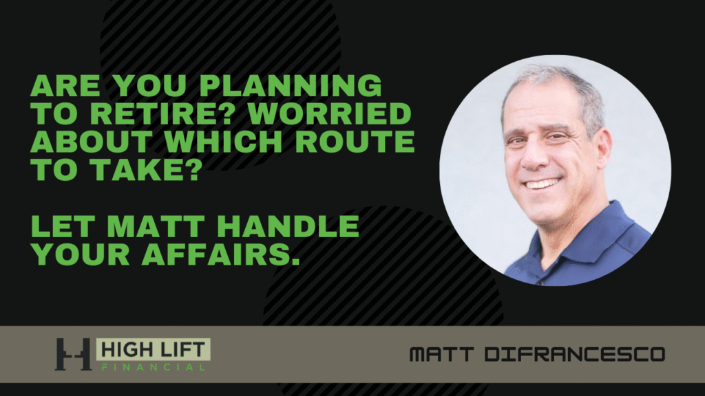 Always make sure to consult your financial advisor with any queries related to personal or business planning. DiFrancesco Financial Concierge, LLC. d/b/a HighLift Financial is a Registered Investment Advisor registered with the State of Pennsylvania and subject to the State of Pennsylvania’s regulatory oversight.